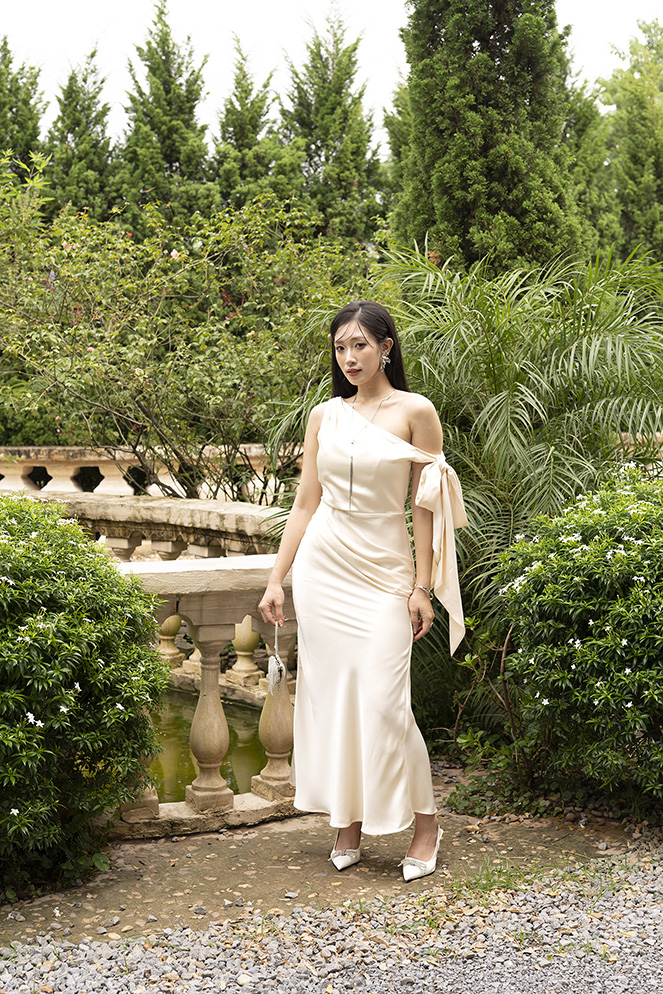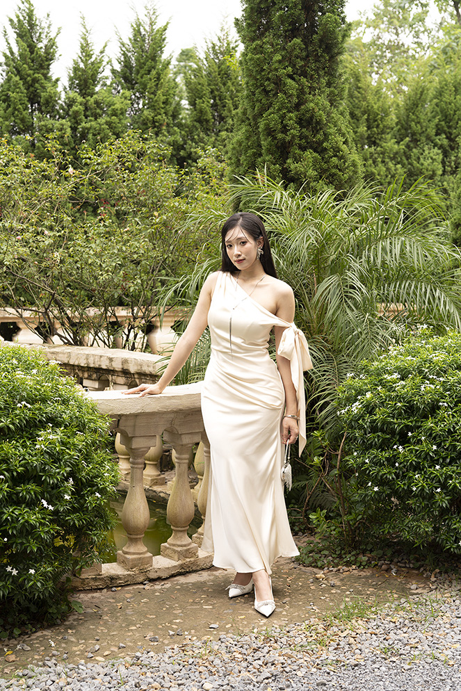 Độ rủ: mềm mại, giúp váy chuyển động nhẹ nhàng theo từng bước đi.”