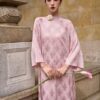 Mỗi sợi lụa mang trong mình sắc ngọc hồng phớt, tạo nên hiệu ứng ánh sáng mềm mại, thanh tao như lớp sương sớm phủ lên cánh hoa đào.